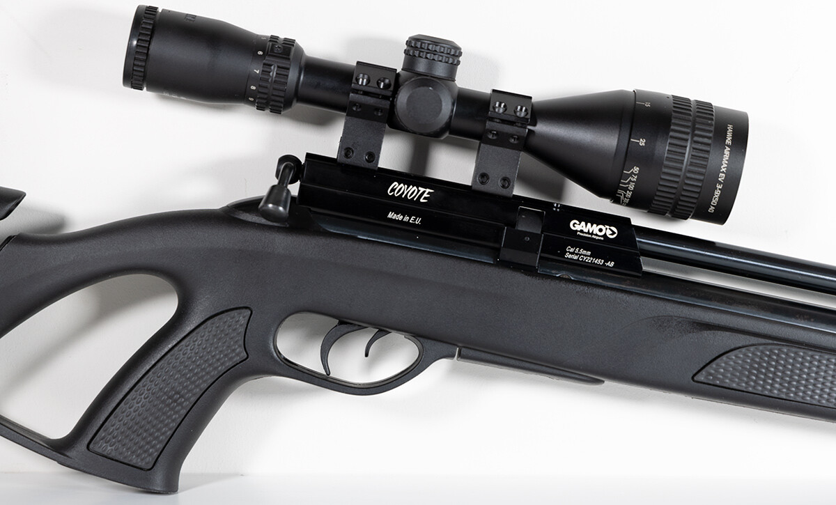Gamo Coyote Black Whisper PCP .22 with Hawke Airmax 3-9X50 ScopeGood condition, serviced and barrel cleaned, ready to go to work