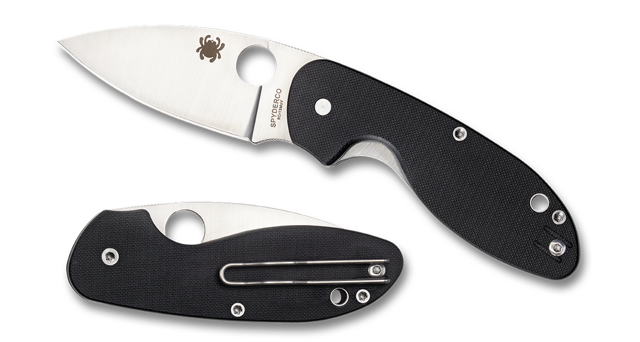 To ensure swift, one-handed opening, the blade also proudly features Spyderco’s signature Trademark Round Hole™. The liners are capped with high-traction, textured black G-10 scales and include a generous cutout that allows easy right-handed access to the blade’s Round Hole, as well as convenient, one-handed release of the lock.